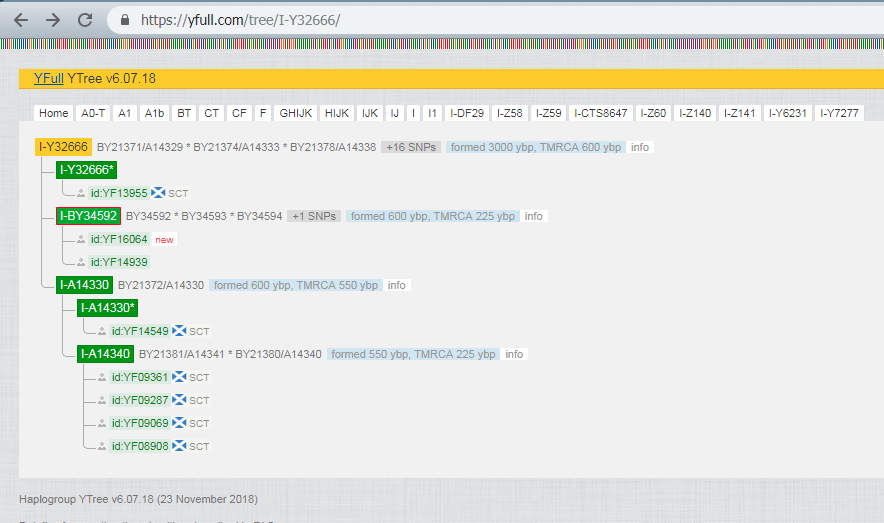 Some of you will already know that all those who tested BigY will have been assigned their specific branch on the tree of mankind. Which branch is automatically updated as more tests are done and new branches created. BigY is the test that keeps on giving.